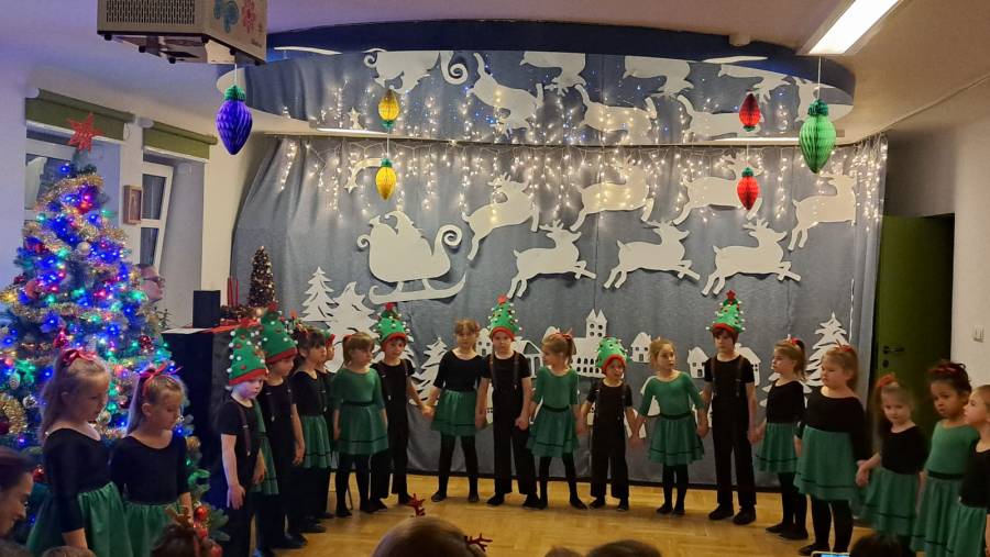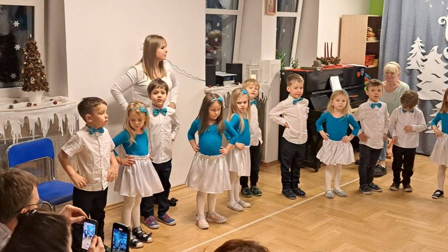 Świąteczna aura rozbłysnęła w przedszkolu zapachem, światłem muzyką i energią Przedszkolaków. Świąteczne koncerty pełne kolęd, pastorałek i piosenek o tematyce bożonarodzeniowej, wprowadziły wszystkich w magiczny czas nadchodzących świąt, pełen uśmiechu, wspólnego kolędowania i ciepłej, rodzinnej atmosfery. Pani Małgorzata Piesiewicz Dyrektor Przedszkola nr 171 oraz nasz specjalny gość Pani Gabriela Szustek Burmistrz Dzielnicy Praga-Północ m.st. Warszawy pogratulowały i podziękowały małym Artystom i Nauczycielom za piękne występy oraz życzyły wszystkim Wesołych Świąt!!!