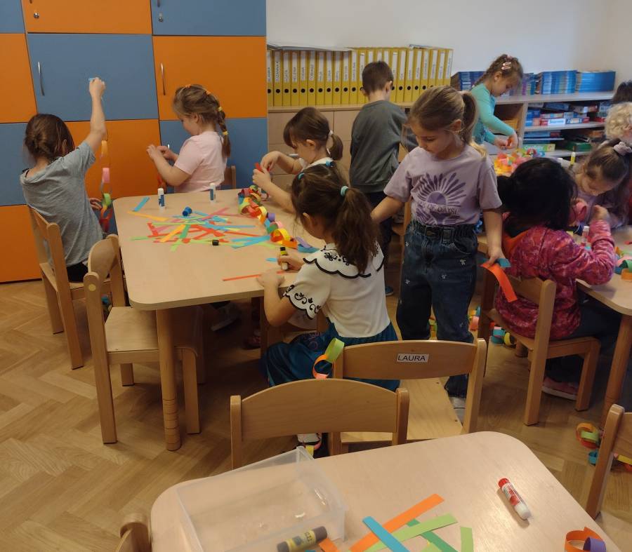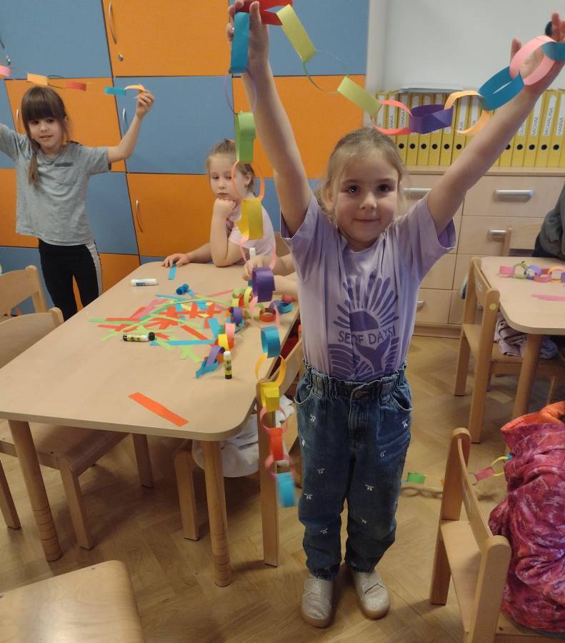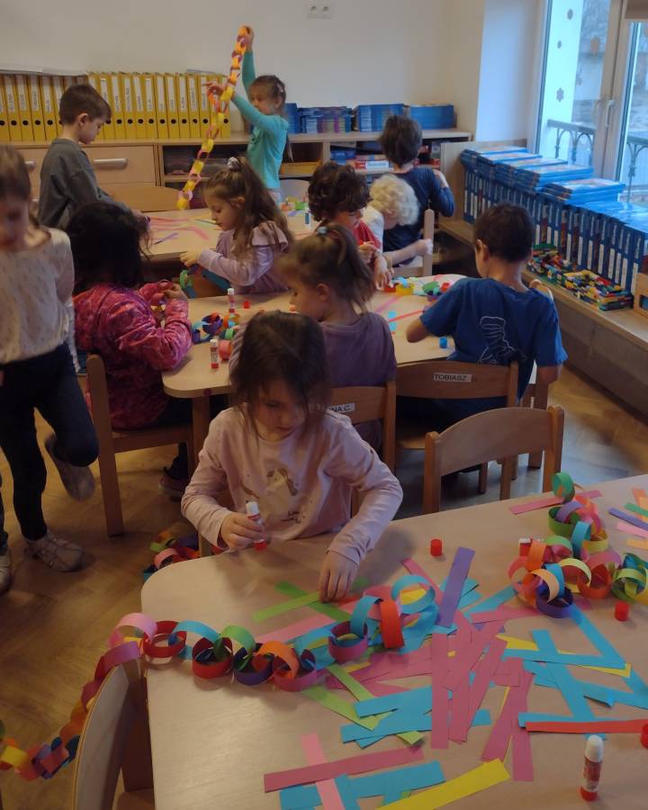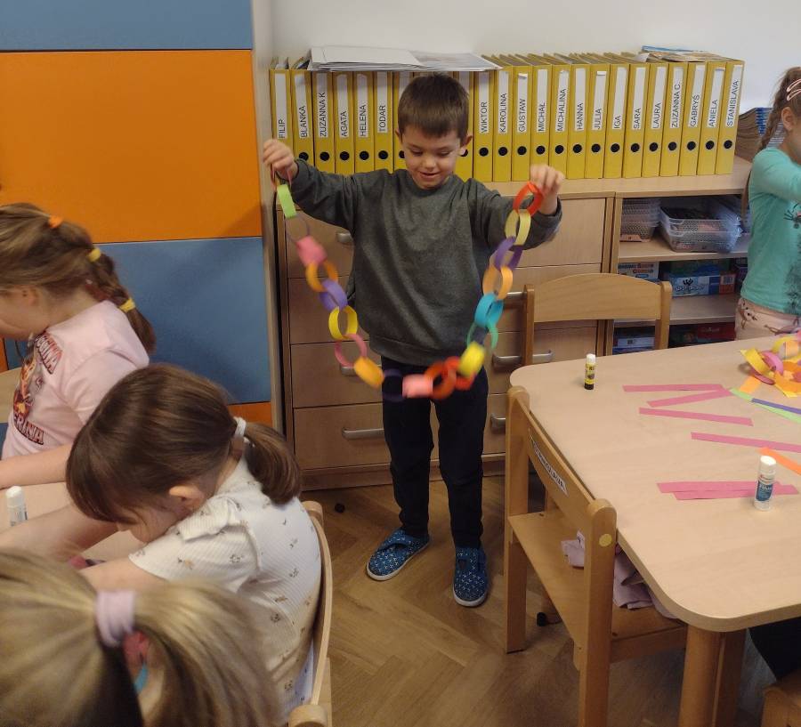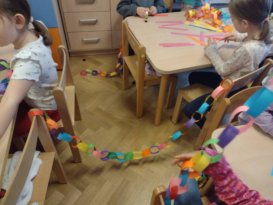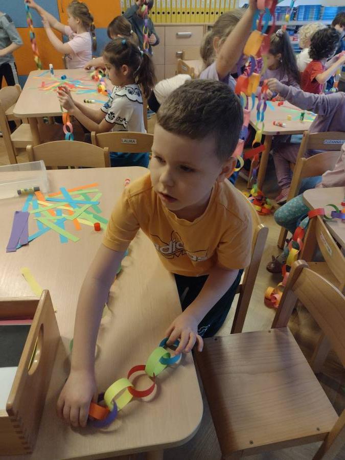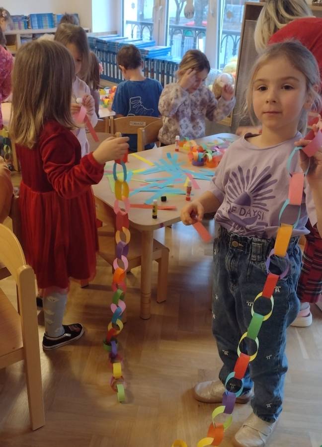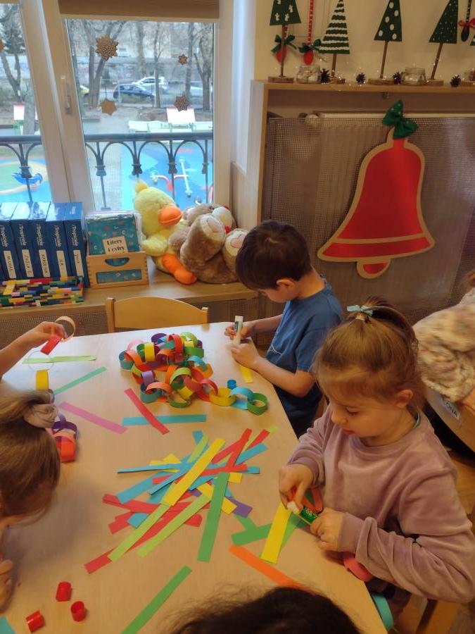 Wykonanie świątecznych łańcuchów okazało się super zabawą dla Przedszkolaków z IV Grupy.