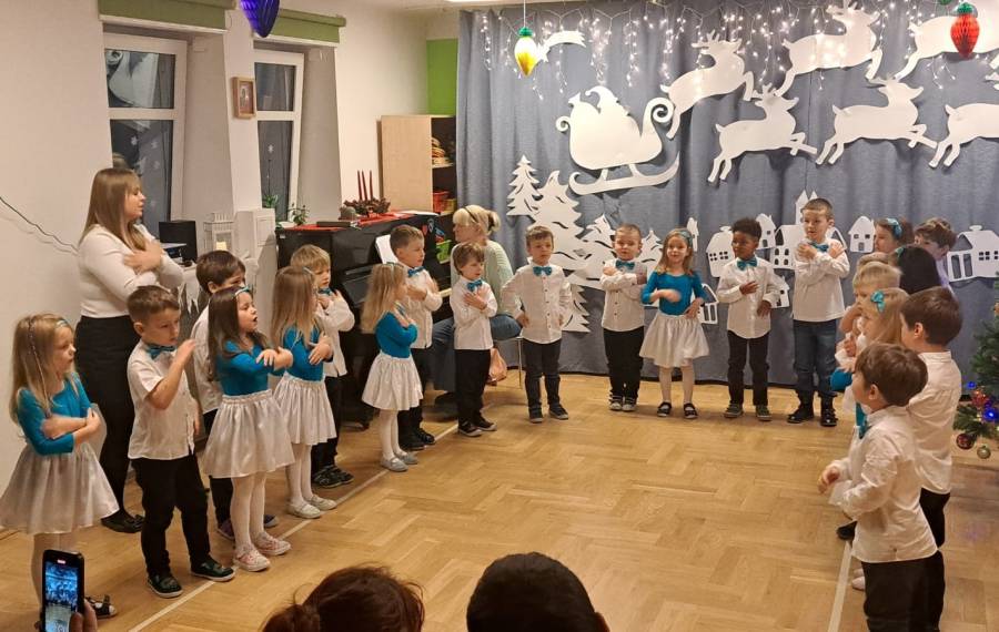 Świąteczna aura rozbłysnęła w przedszkolu zapachem, światłem muzyką i energią Przedszkolaków. Świąteczne koncerty pełne kolęd, pastorałek i piosenek o tematyce bożonarodzeniowej, wprowadziły wszystkich w magiczny czas nadchodzących świąt, pełen uśmiechu, wspólnego kolędowania i ciepłej, rodzinnej atmosfery. Pani Małgorzata Piesiewicz Dyrektor Przedszkola nr 171 oraz nasz specjalny gość Pani Gabriela Szustek Burmistrz Dzielnicy Praga-Północ m.st. Warszawy pogratulowały i podziękowały małym Artystom i Nauczycielom za piękne występy oraz życzyły wszystkim Wesołych Świąt!!!