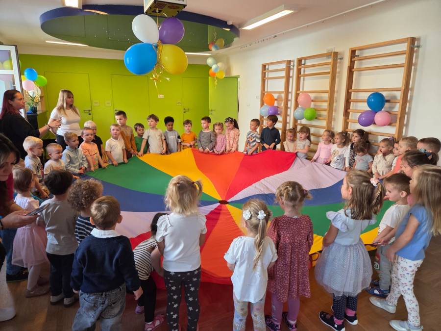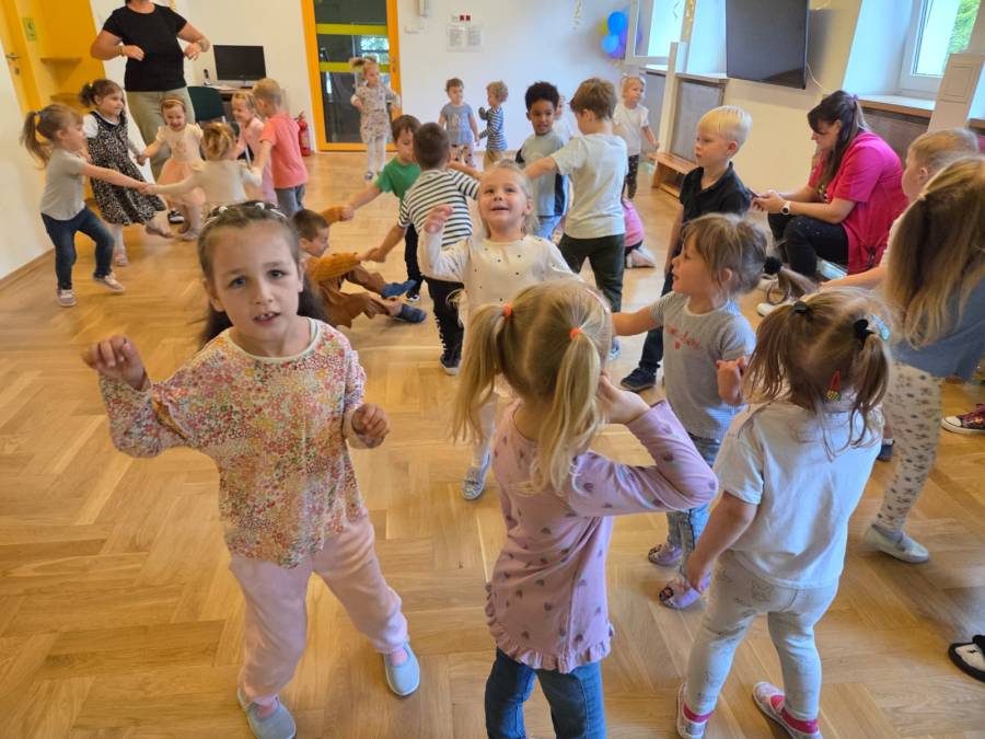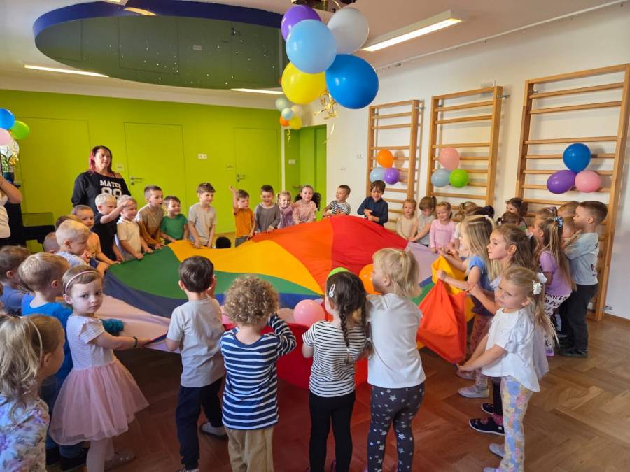 Dnia 19 września 2025 r. kolejny raz obchodziliśmy w naszym przedszkolu Święto Przedszkolaka. Tego dnia czekało na dzieci wiele niespodzianek i atrakcji. Zostały zaproszone do wspólnej zabawy, udziału w konkursach i tańców przy ulubionych przebojach muzyki dla dzieci. Radość i śmiech świadczyły o wspaniałej zabawie. Złożyliśmy wszystkim, maluszkom i starszakom życzenia samych słonecznych dni i radosnych chwil w naszym przedszkolu, aby każdy dzień był wspaniałą przygodą i niósł ze sobą wiele cudownych i pozytywnych doświadczeń.